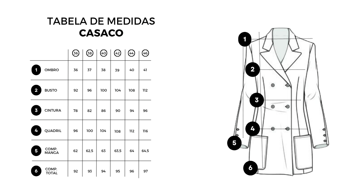 O design clean, aliado ao corte moderno, traz um charme discreto e refinado, ideal para composições urbanas e invernais.